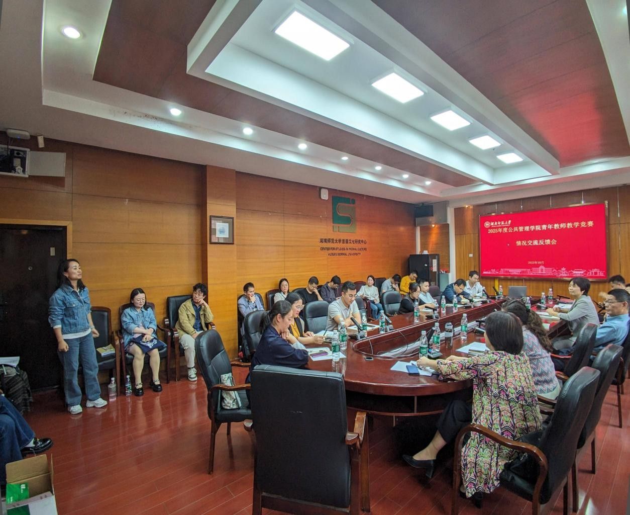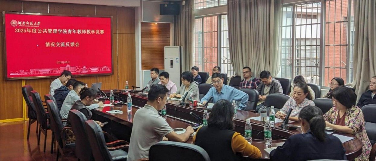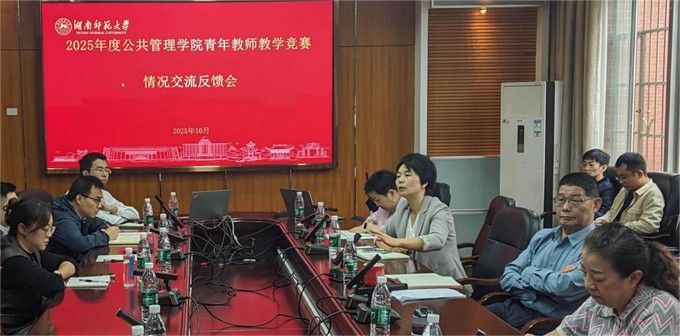 (通讯员:周佳卉)2025年10月16日星期四,湖南师范大学公共管理学院于景德楼415会议室举行2025年秋季学期青年教师课堂教学竞赛反馈交流会。学院党委书记余望成、教学副院长苏静、竞赛评委组部分成员及参赛教师共同参会,会议由苏静副院长主持。