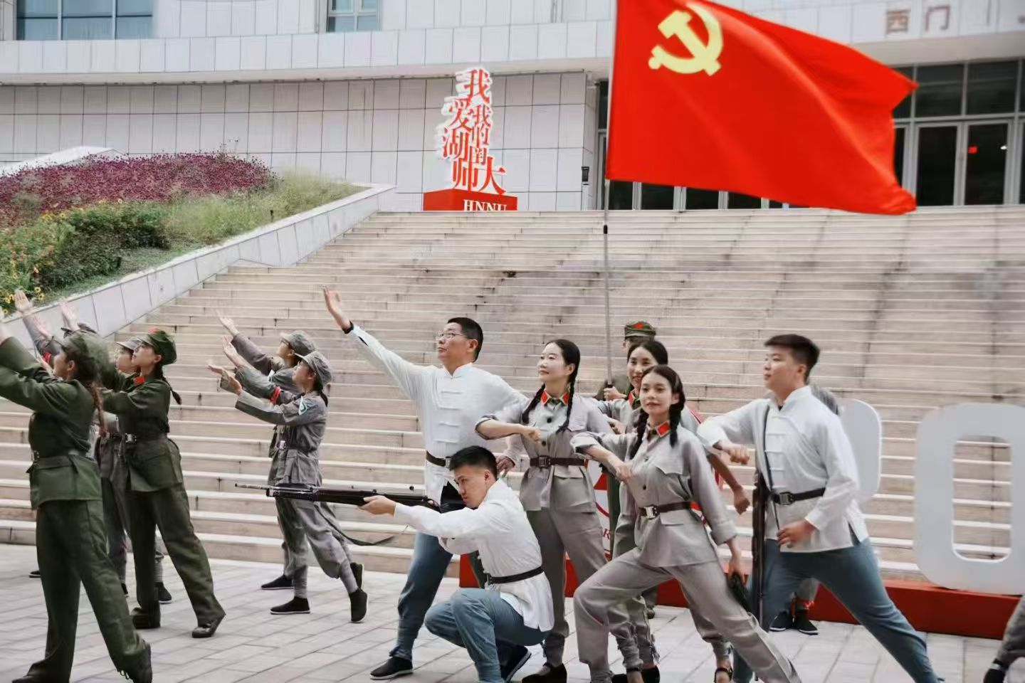 为备战此次比赛,我院高度重视、周密部署。赛前不仅邀请专业指导老师对《保卫黄河》进行音乐编排与舞蹈设计,新生辅导员兰绍娴、罗洋更组织同学们利用课余时间集中训练,确保演唱质量与动作整齐度。余望成、院长毛新志、陈丽荣多次深入排练现场,为合唱加油鼓劲;余望成、陈丽荣加入队列与同学们并肩练习,极大地提振了团队士气。