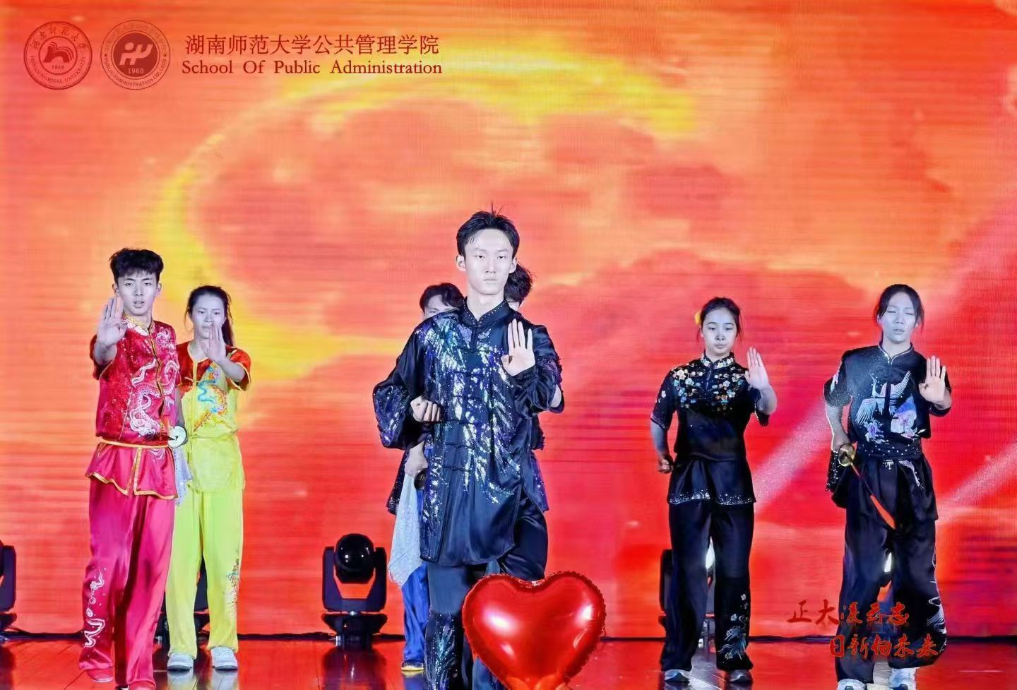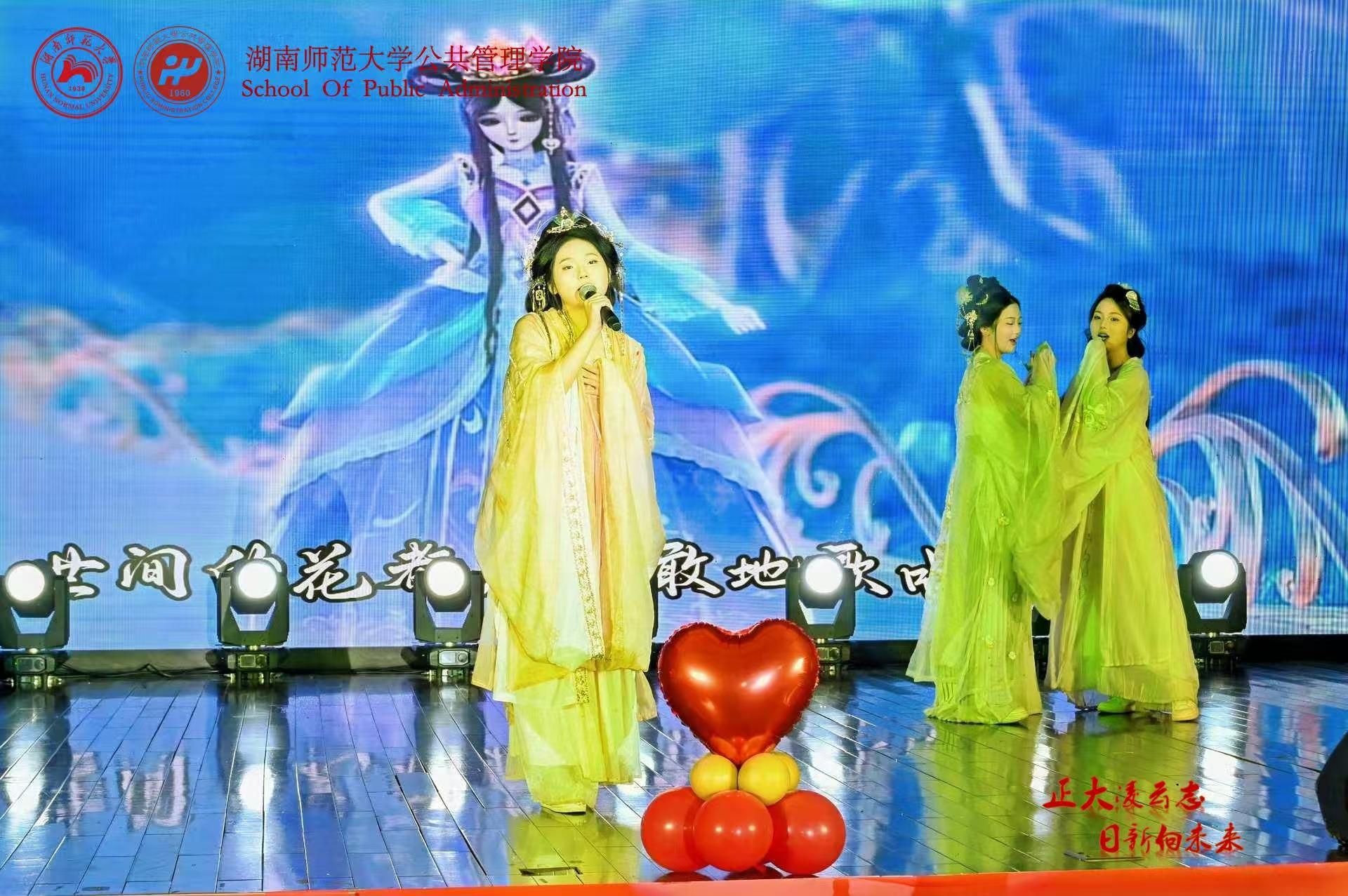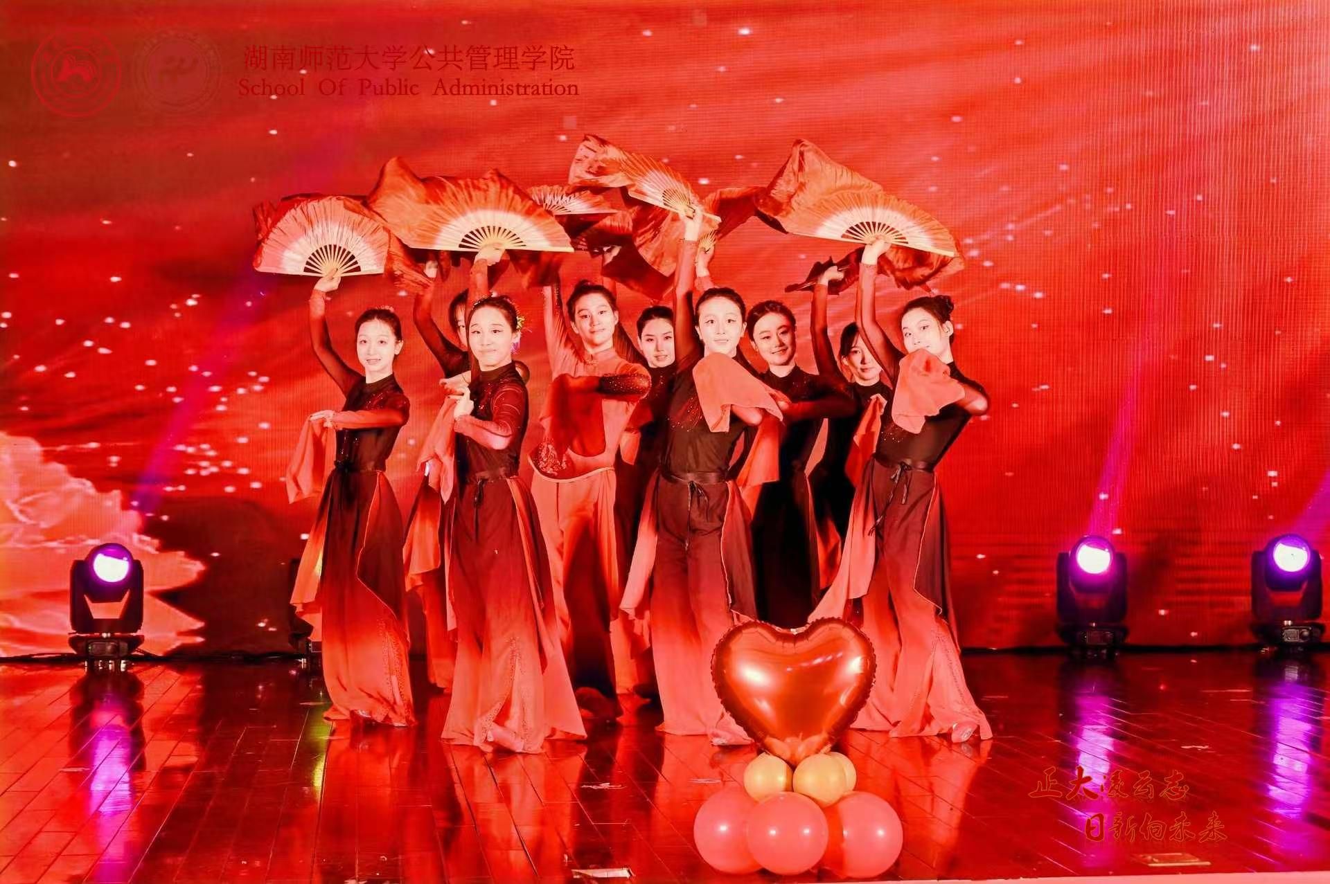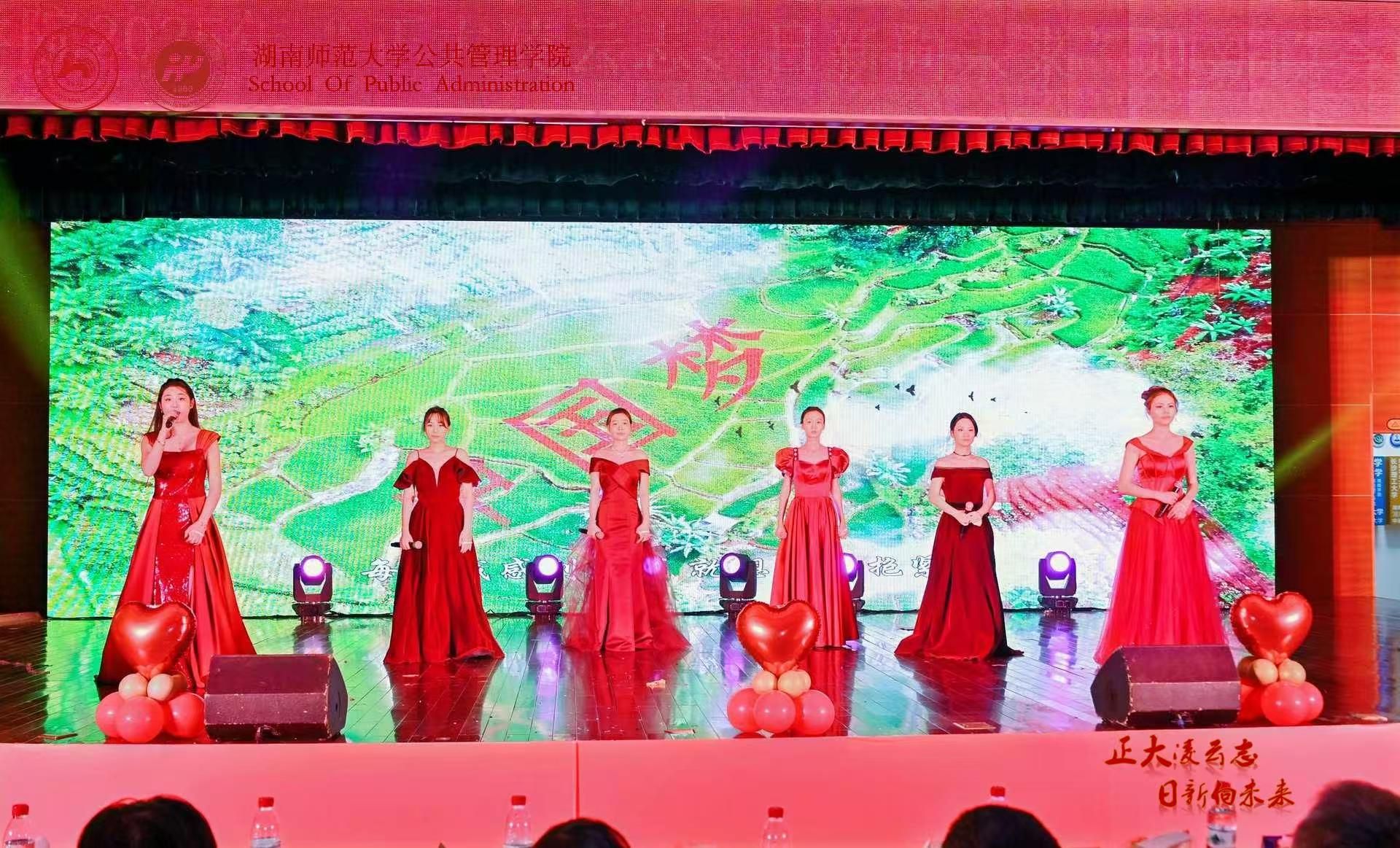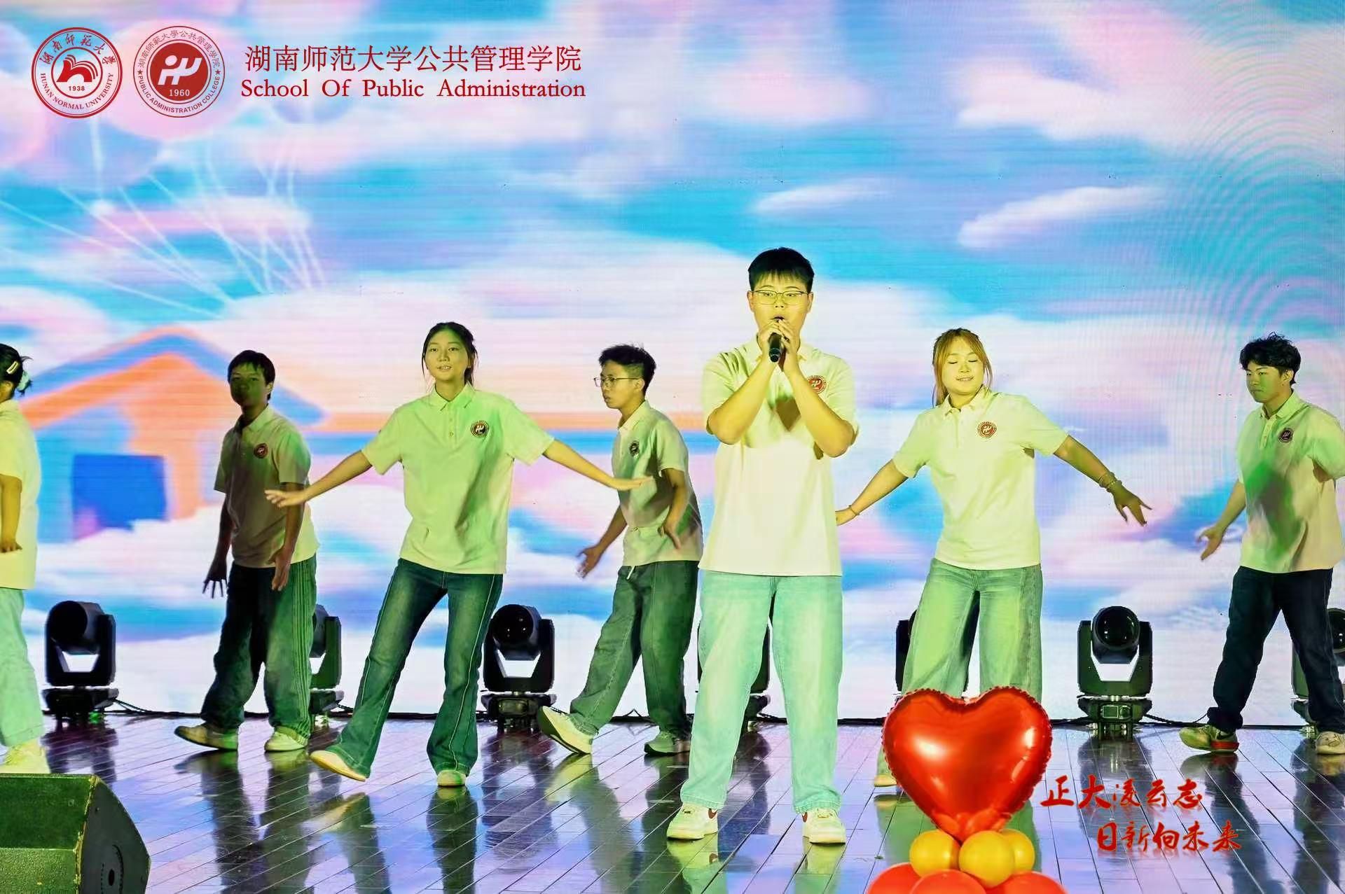 晚会尾声,余望成、向玉乔、王敏、苏静、邝洁、陈丽荣等与研办、学办全体老师登台献唱《国家》,与现场同学合唱校歌。昂扬向上的歌声中,师生同心传递家国情怀,对学院未来发展寄予期许,为此次迎新晚会画上了圆满句号。