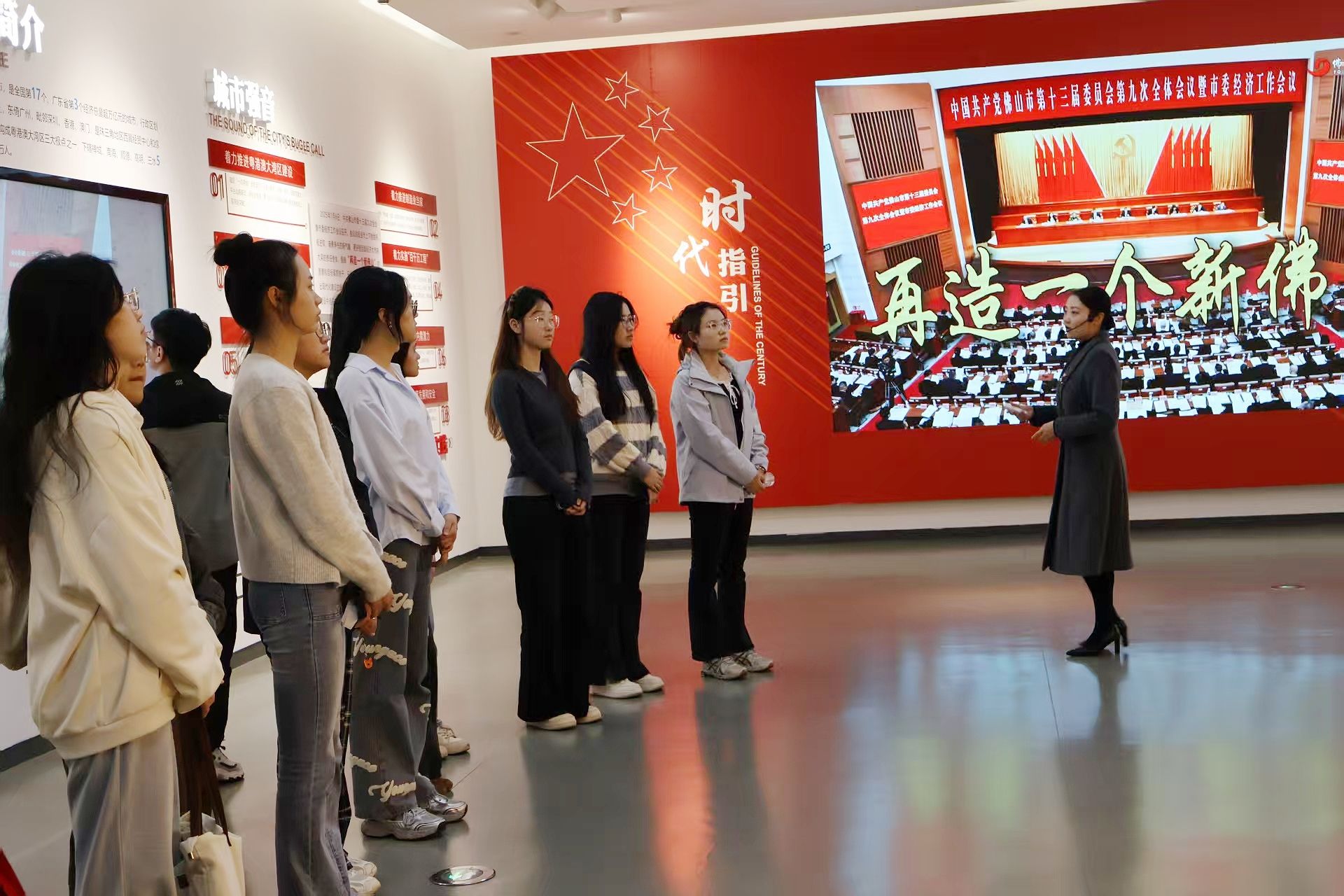 18日,研学团到访广东金戈新材料股份有限公司,董事长黄超亮与政务官员、企业高管围绕成长选择、时代机遇与个人责任展开深度对话,分享创新创业、公共服务与基层治理领域的实践心得,为学生骨干理解时代与个人的辩证关系提供了鲜活参照。当日下午,研学团先后参观佛山城市规划展览馆与岭南天地历史文化街区,通过图文影像、模型展示与实地走访,感受佛山在历史文脉传承与现代城市更新中的创新探索,理解城市发展的历史逻辑与未来方向。