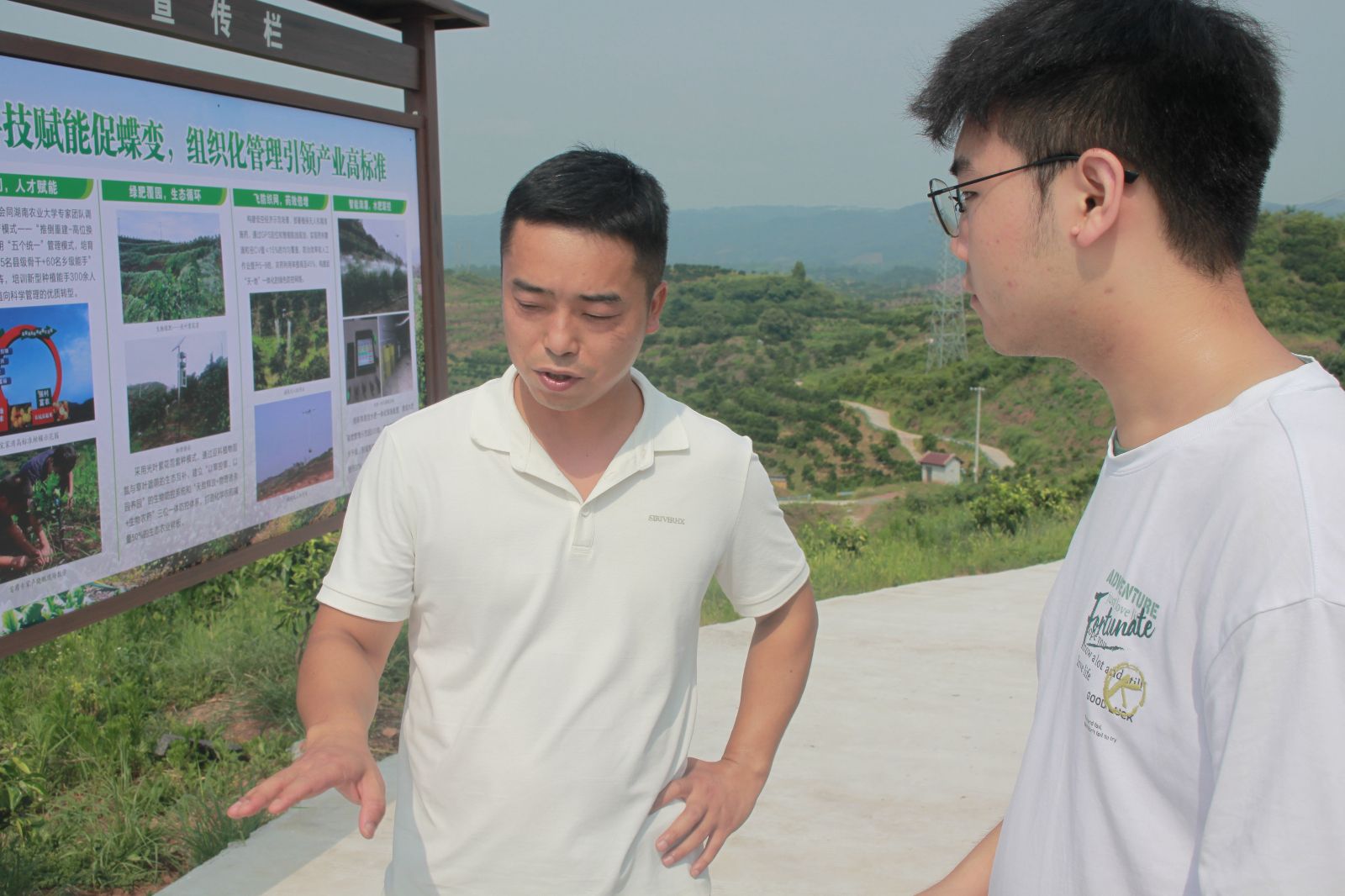 宋浩带领实践团成员参观了最新品种的冰糖橙树,并为实践团成员介绍了当地联村联创、高校合作、粗放式管理的独特经营模式。除此之外,通过人才引进、标准化管理,冰糖橙产量和质量显著提高,增加了村集体经济收入。