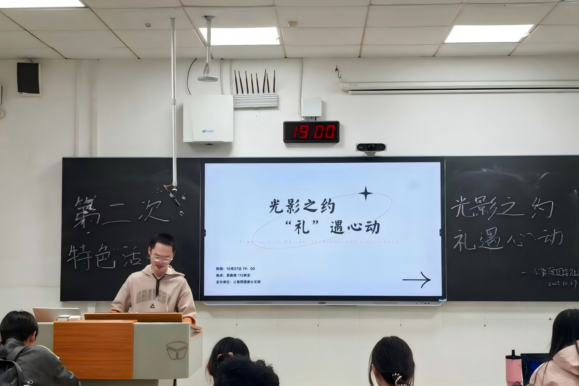 (通讯员 叶雨姗 张佩研 张玉怡)为帮助同学们掌握约会礼仪,提升社交素养,10月27日晚,公共管理学院(以下简称“公管院”)团委社会实践部(以下简称“社实部”)于至善楼115教室举办了公关礼仪课程第二次特色活动——“光影之约,‘礼’遇心动”。公管院团委社实部负责人以及所有选修公关礼仪课程的学生参加了此次活动。