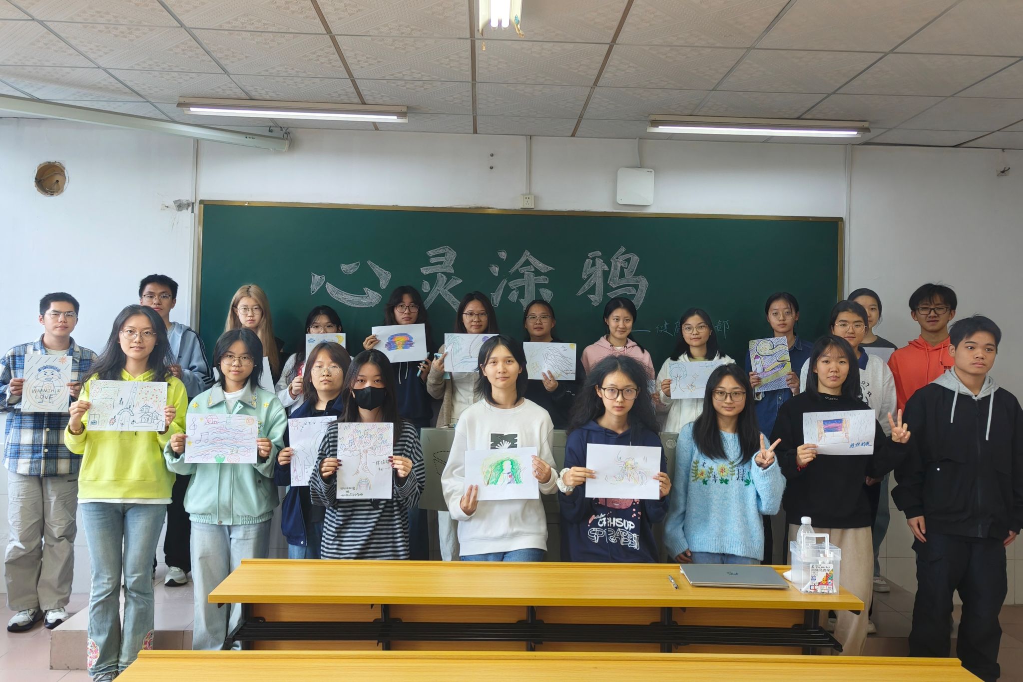 11月2日,张公岭校区开展“墨随心动”心灵涂鸦活动,健康服务部工作人员提前准备活动用品,参与者在音乐的陪伴下,用彩笔在白纸上以线条、色彩表达当下情绪,完成后依次分享背后的心情故事,同学们投票选出一二三等奖并发放奖品。