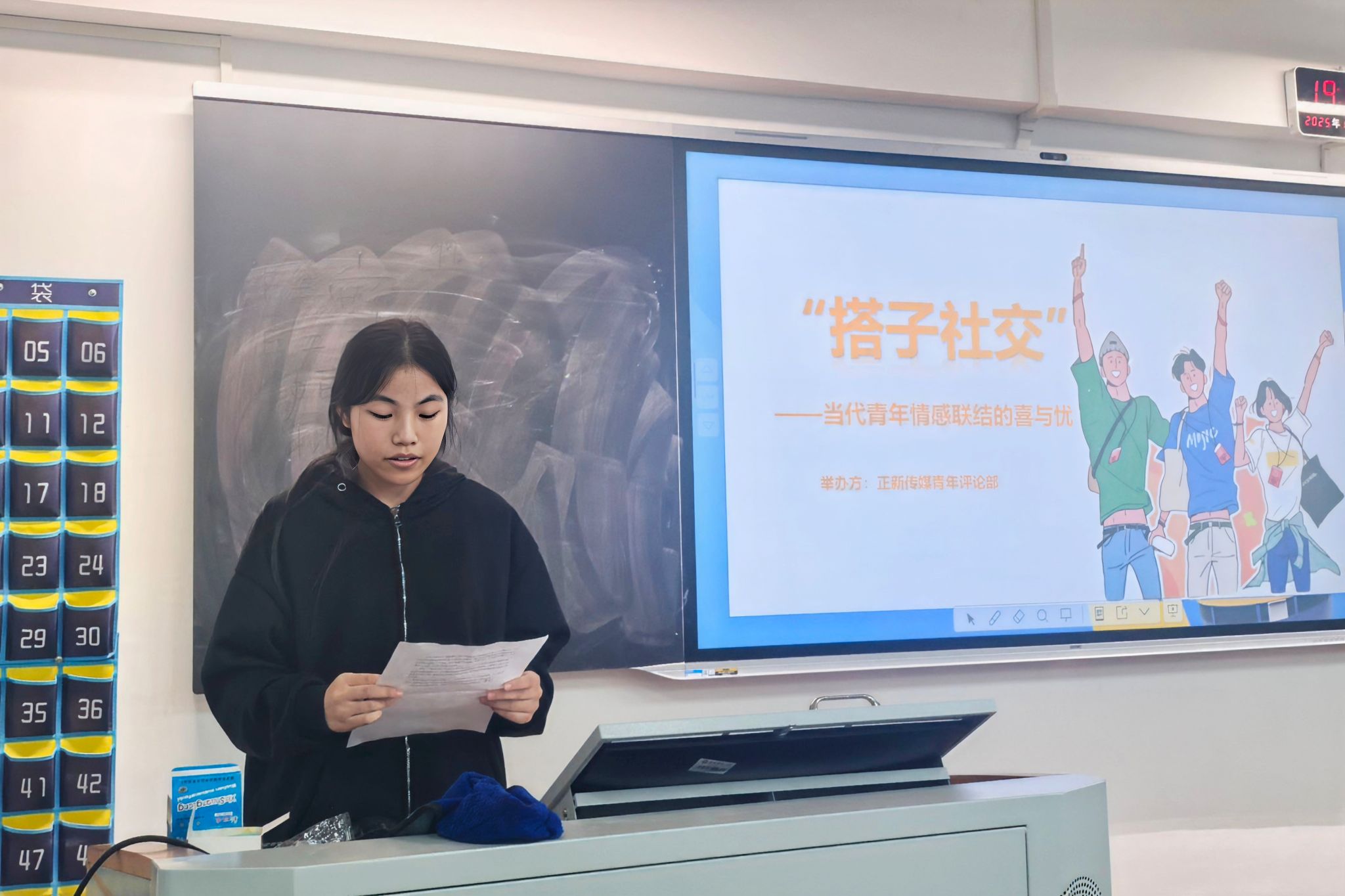 (通讯员 蔡一凡 朱曼丽 王一诺)为提高公共管理学院(以下简称“公管院”)学子对当下社交潮流与青年情感趋向的关注度和敏感度,引导其理性、辩证地思考时事热点并表达个人观点,公管院青年传媒中心青年评论部(以下简称“青评部”)于10月30日晚在桃花坪校区实训楼304教室举办“‘搭子社交’风行:当代青年情感联结的喜与忧”时事评论会。此次活动由青评部朱曼丽主持,参与人员包括青评部部分成员及30余名公管院学生。