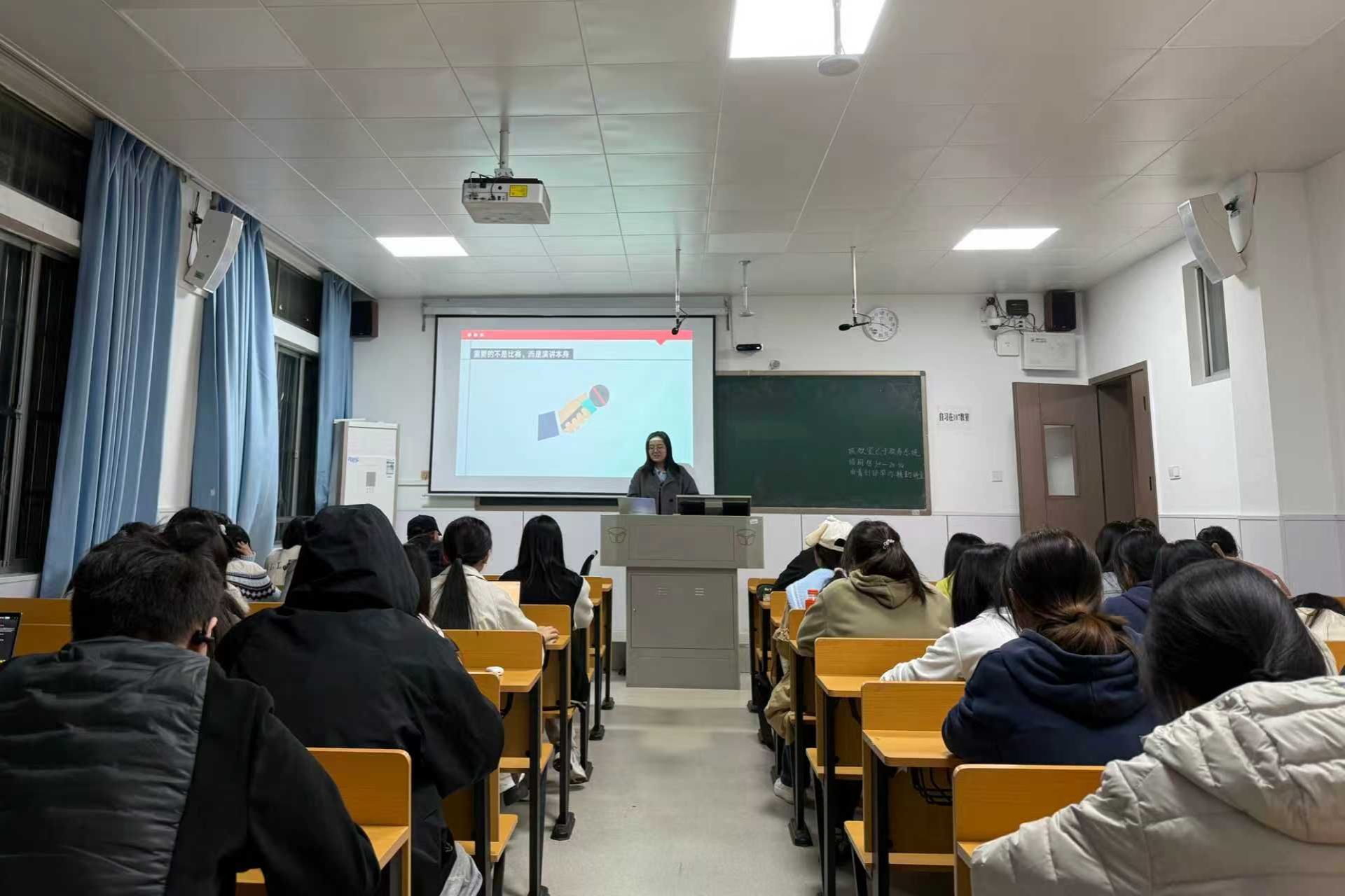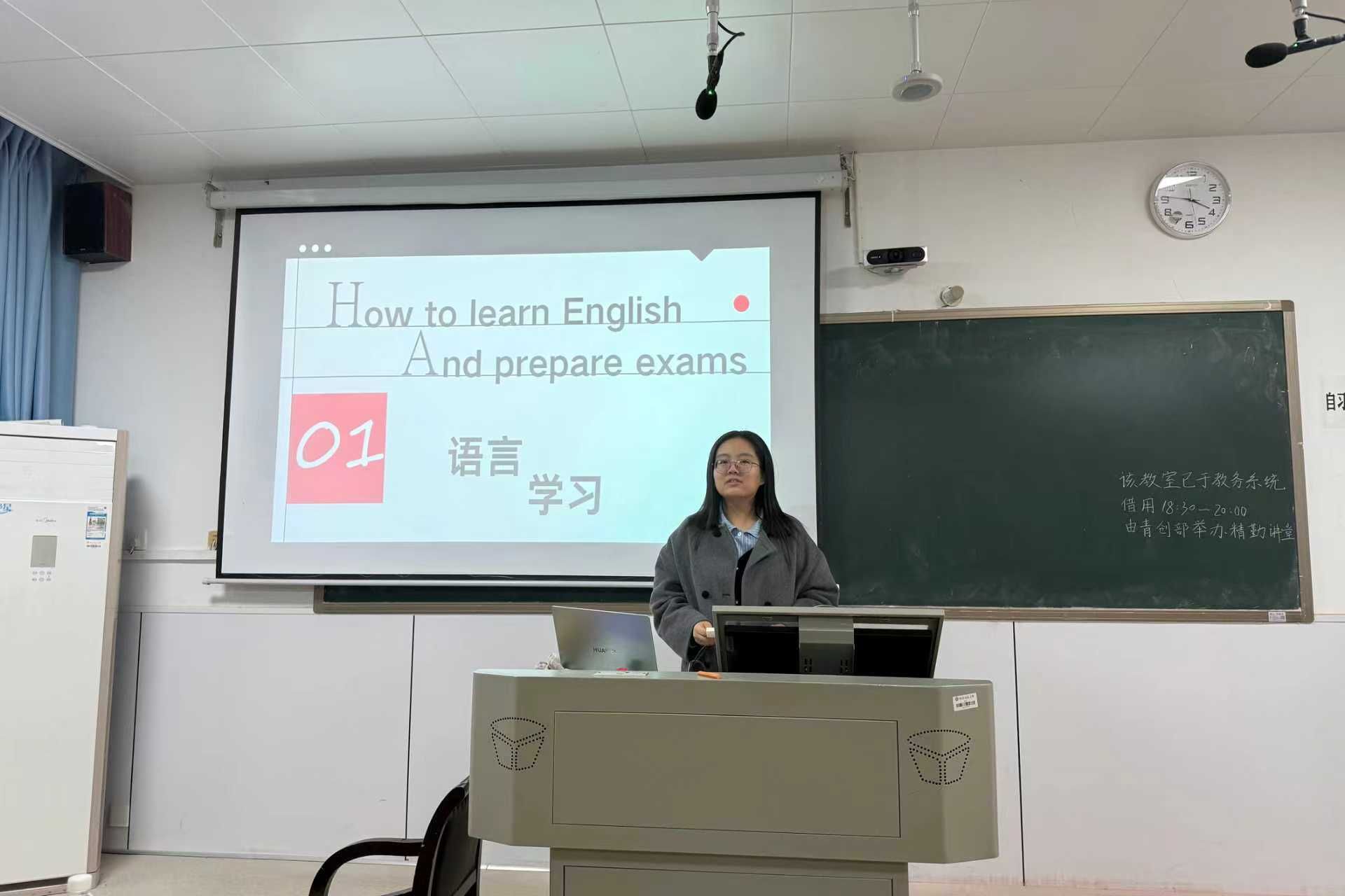 (通讯员 毛曼霖 何欣颜 王一诺)为激发同学们英语学习的兴趣,营造校园积极学习英语的氛围,公共管理学院(以下简称“公管院”)于11月12日晚在景德楼中栋112教室举办了以“语言的星河 演讲的回响”为主题的精勤讲堂,此次精勤讲堂由第七届“外教社杯”全国高校学生跨文化能力大赛中国学生组季军、2023级政治学与行政学班谢思雨担任主讲人,由刘金瑶担任主持人,公管院2023级、2024级、2025级共60余名同学参加此次精勤讲堂。