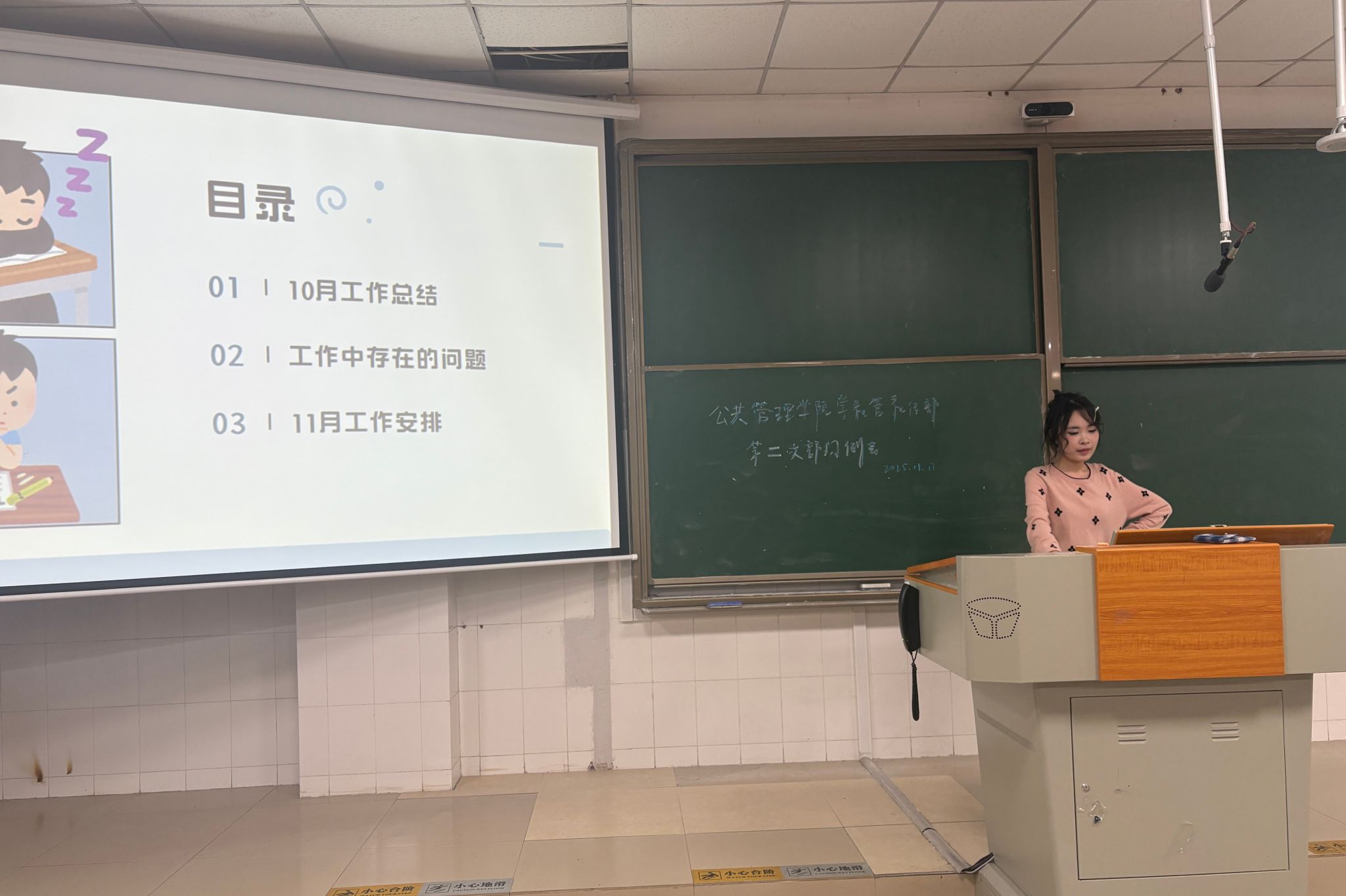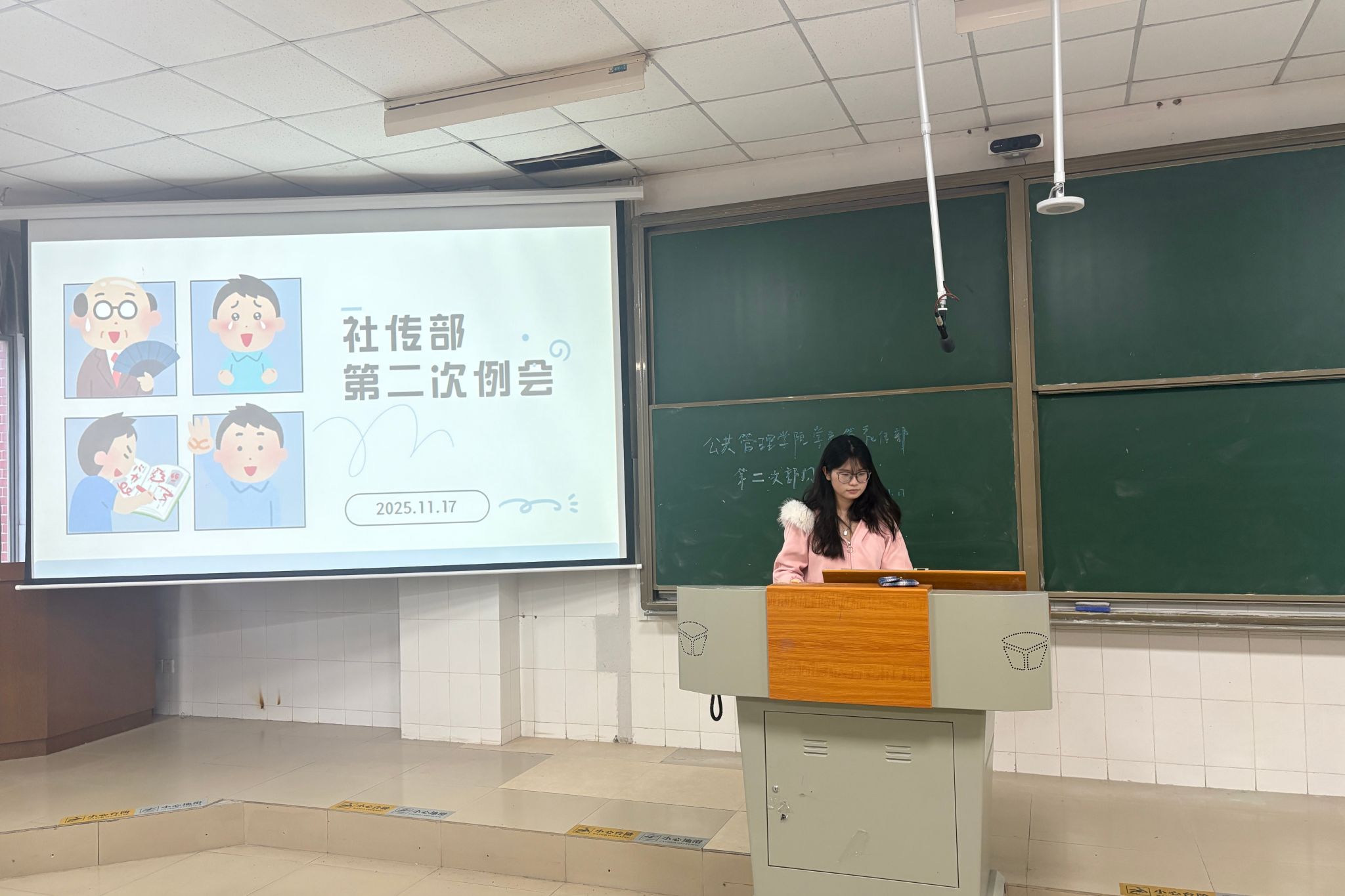 (通讯员 钟嘉琪 代莉文 张玉怡)为巩固工作成果、梳理问题并规划新篇,11月17日晚上,公共管理学院(以下简称“公管院”)学生社团管理中心社团文化传播部于景德楼南栋203教室召开本学期第二次线下例会。此次参会人员包括公管院学生社团管理中心社团文化传播部部长代莉文、副部长钟嘉琪以及四位干事。会议由部长代莉文、副部长钟嘉琪主持,部门全体干事积极参与。