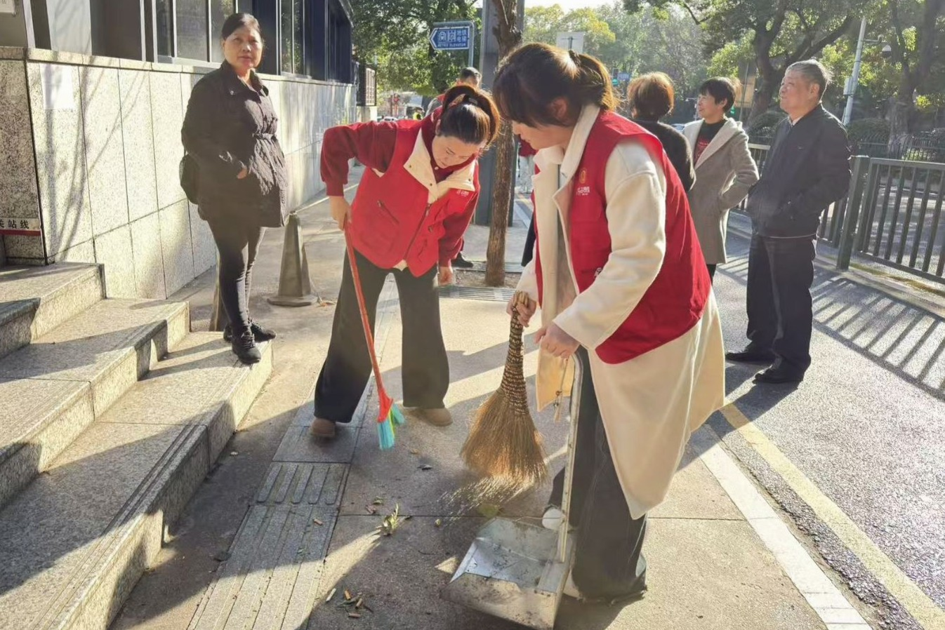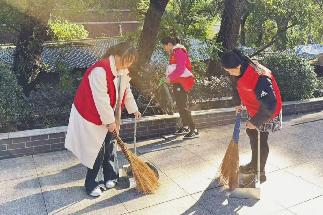 此次活动志愿者按时到达湖南大学社区居委会,与负责此次活动的社区老师对接,并了解今天的任务。活动中,志愿者们跟随社区老师的队伍前往不同地点,开始进行清扫工作。志愿者们分为两队,一队帮助清理垃圾、落叶,另一队协助搬运桌椅,为下午的“遇见中医”活动做准备。一名志愿者表示:“我们彼此支撑,用协作将一件平凡小事完成的充满温度。”活动结束后,活动参与人员在湖南大学社区党群服务中心前进行合影留念,社区老师对志愿者的付出表示肯定。