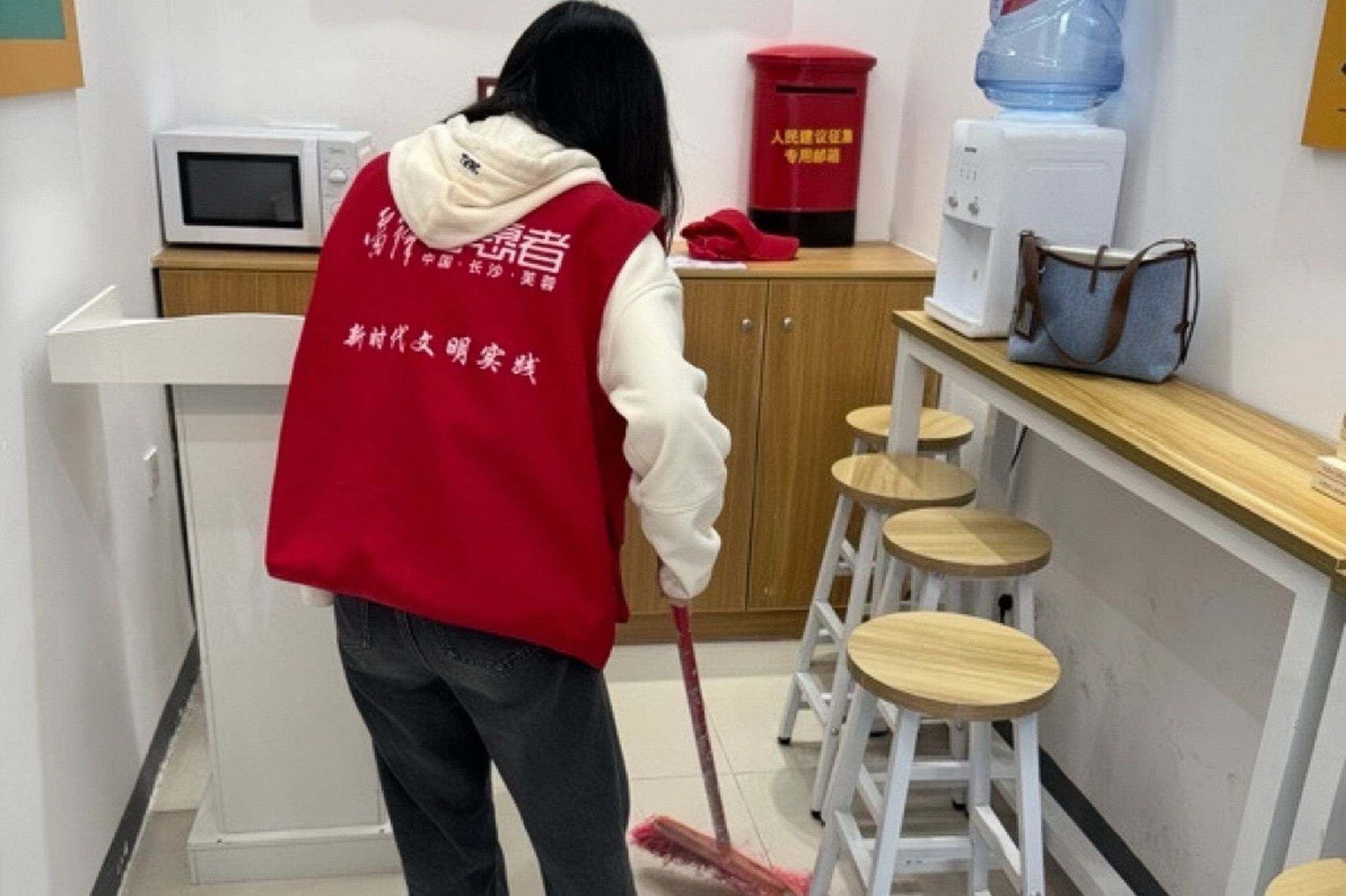 在五一商圈“红色之家”服务站内,一抹抹“志愿红”格外亮眼。来自湖南师大的青年学子们以轮班值守的方式,扎根志愿服务一线,用点滴行动践行奉献精神。他们手持扫帚仔细清扫服务站地面,整理便民物资、检查水电设施,让“红色之家”始终保持整洁有序;在站内读书角,志愿者们利用值守间隙开展理论学习,翻阅红色读物、交流思想感悟,将初心使命融入日常服务;在繁华的商圈街头,他们主动站在人行道旁,为往来游客提供路线指引、应急帮助,用耐心与微笑传递城市温度。