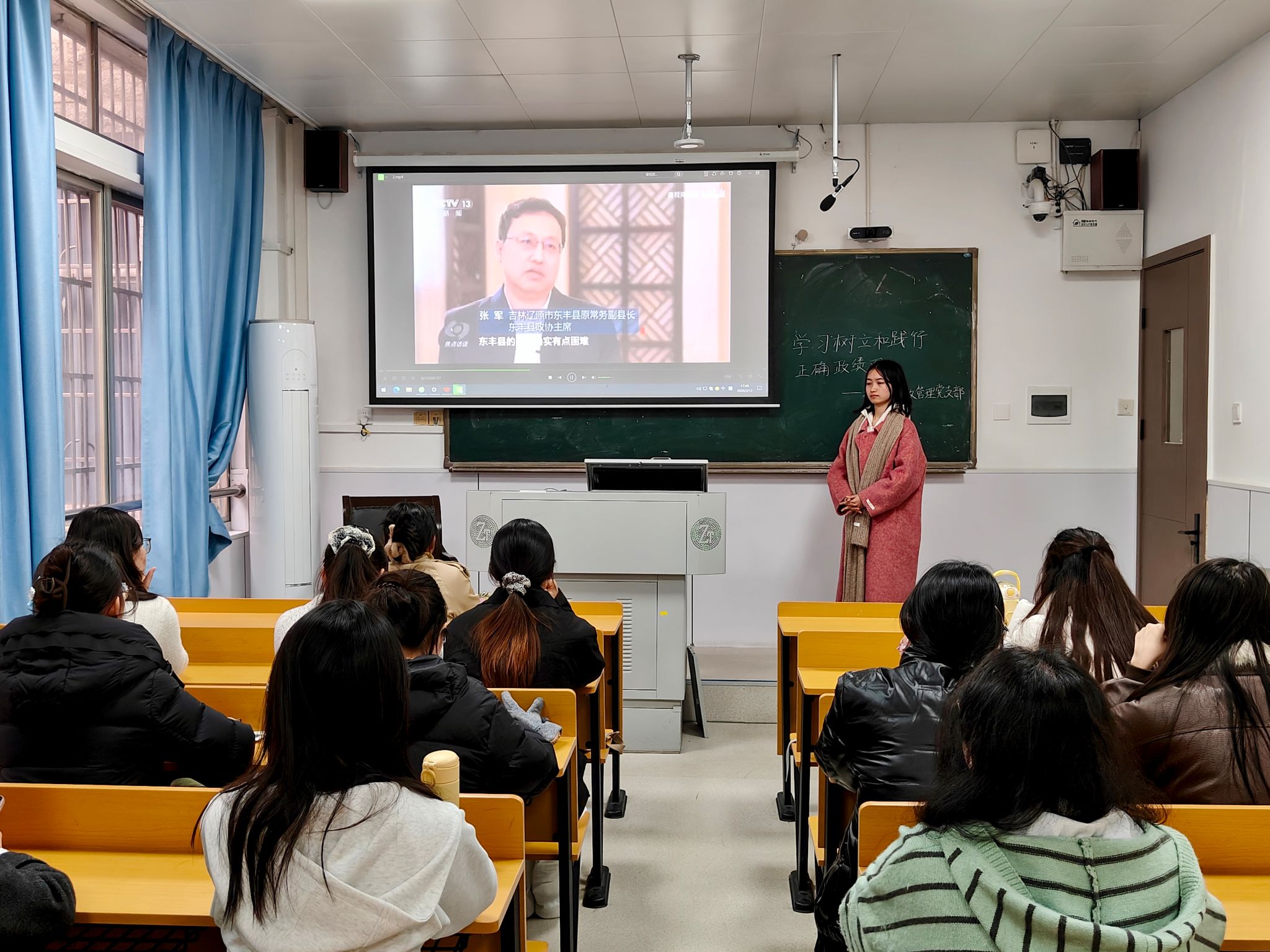 刘敏佳从树立正确政绩观的时代意义、核心内涵、学生党员践行要求及实践路径四个方面展开讲解。她以“十五五”开局的时代背景为切入点,明确政绩观是关乎立党为公、执政为民的根本性问题,阐释了开展政绩观学习教育对管党治党、推动事业发展的重要意义。随后,她围绕“政绩为谁而树、树什么样的政绩、靠什么树政绩”三大核心问题,着重说明要以人民为中心,兼顾显功与潜功,以实干实绩诠释初心。刘敏佳还结合学生党员身份引导支部成员摒弃功利心态,将政绩观要求转化为服务同学、担当集体责任的实际行动。
