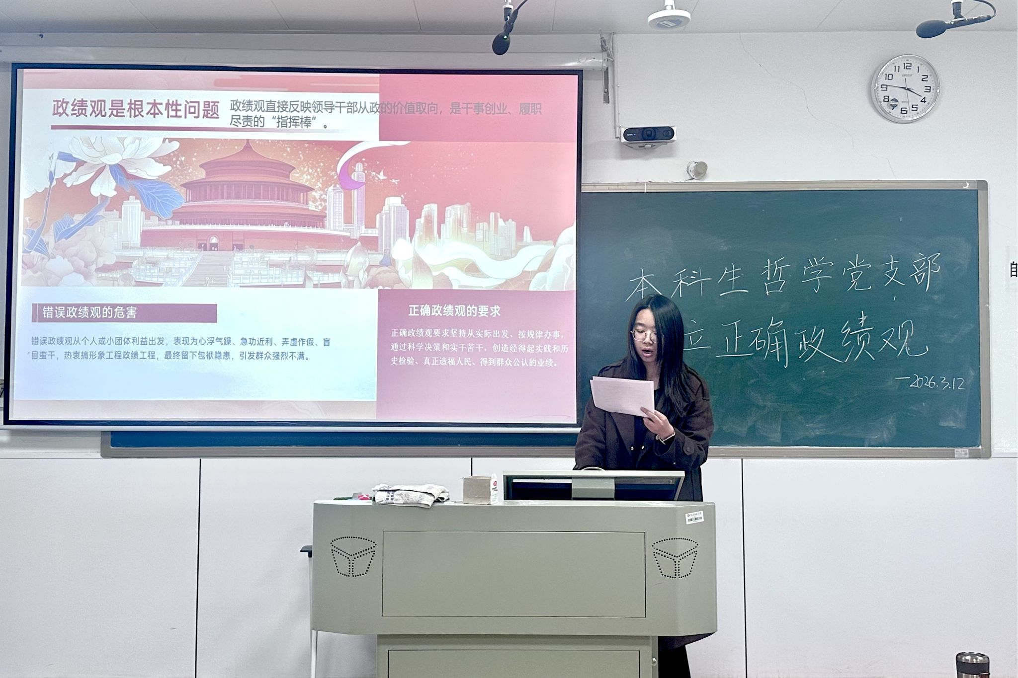 (通讯员 刘美池 万梓妍 王涵钰)为深入学习贯彻习近平总书记关于树立和践行正确政绩观的重要论述,引导支部党员坚定理想信念、强化责任担当,3月12日下午,政治与公共管理学院本科生哲学党支部以“三会一课”形式,开展正确政绩观学习教育活动。