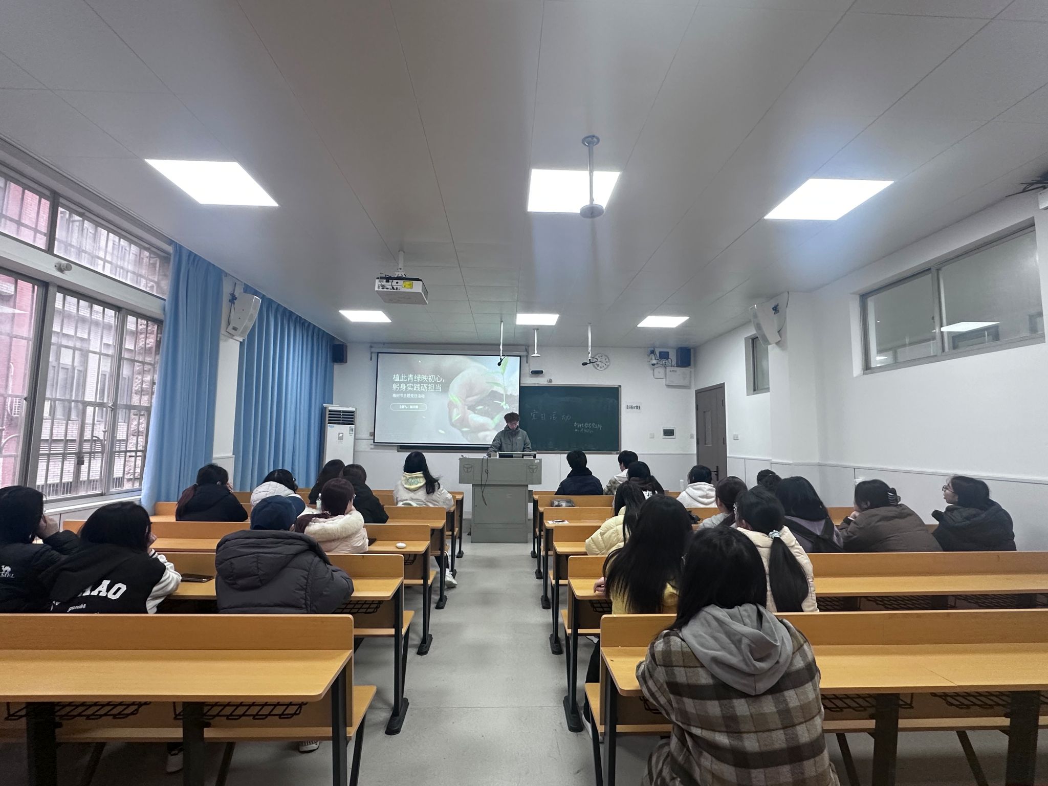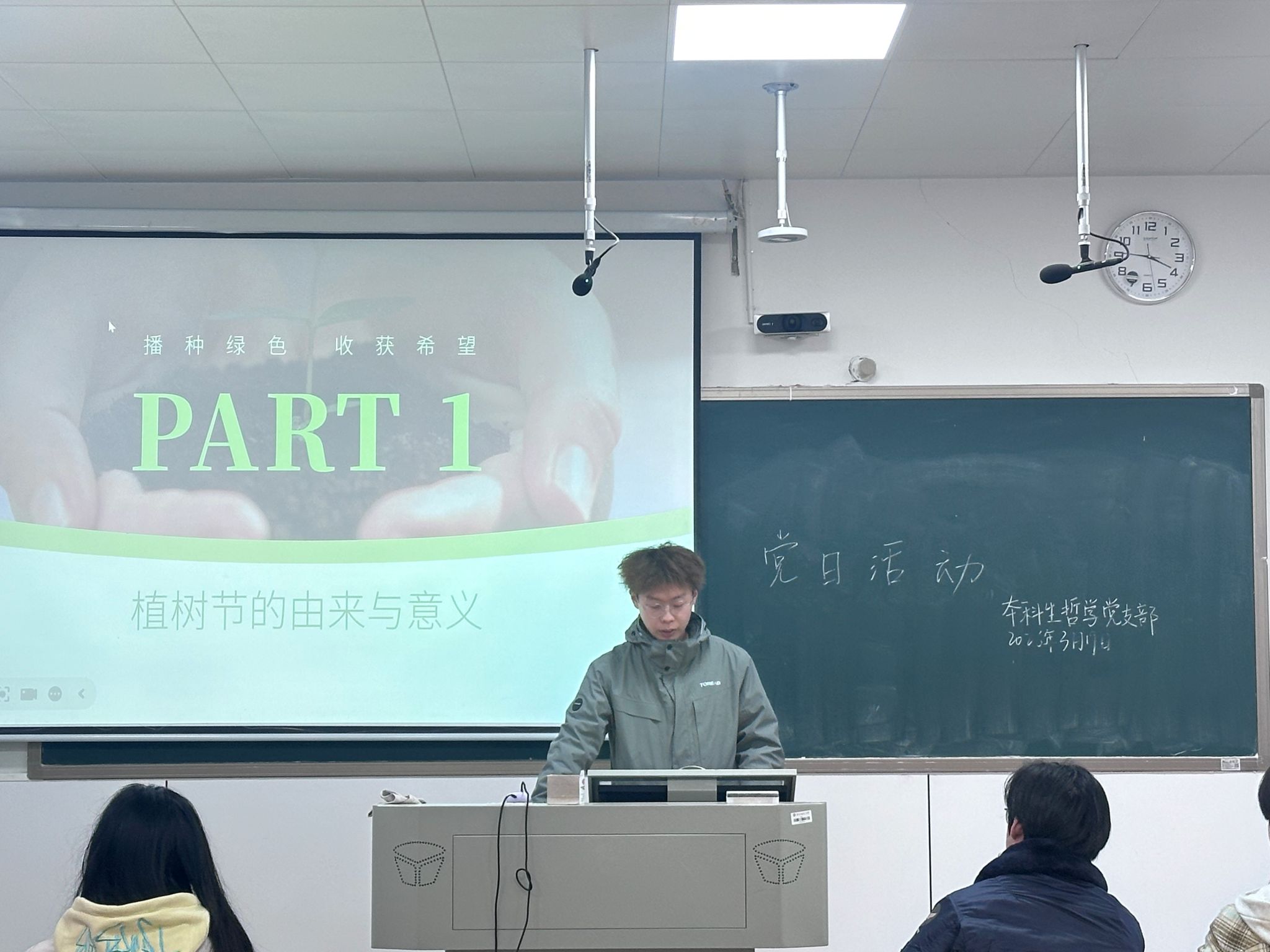 此次党日活动中,主讲人硕日瀚围绕植树节的由来与意义、新中国的生态保护实践等内容展开讲解。从1915年林学家倡议设立植树节,到1979年全国人大常委会确定3月12日为法定植树节,再到2020年新修订《森林法》明确植树节规定,支部成员了解了植树节的发展历程,同时也认识到当前我国林区面临的生态挑战,植树造林对于涵养水源、维护生物多样性、推动可持续发展具有重要生态意义。在新中国生态保护部分的学习中,硕日涵带领支部成员学习了塞罕坝林场、福建长汀水土流失综合治理等生态保护案例,感受了三代人接续奋斗的生态坚守,也明晰了“十五五”时期生态环境保护的四大转变要求,进一步筑牢了生态文明思想根基。