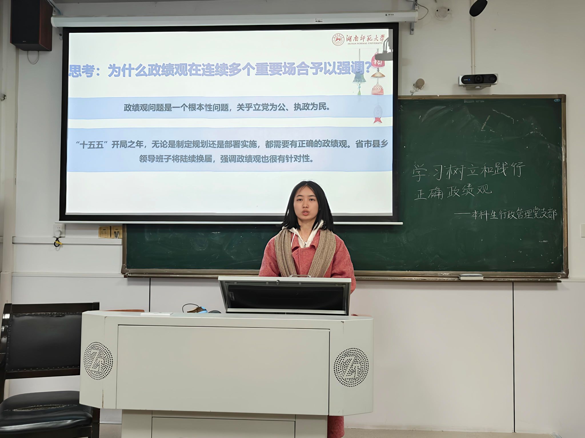 (通讯员 柴玥琪 赵露潞 盛若水)为引导支部成员把握正确政绩观的核心要义与实践要求,切实把思想和行动统一到党中央决策部署上来,3月27日下午,政治与公共管理学院本科生行政管理党支部于景德楼中栋109教室开展正确政绩观专题学习活动,刘敏佳担任主讲。