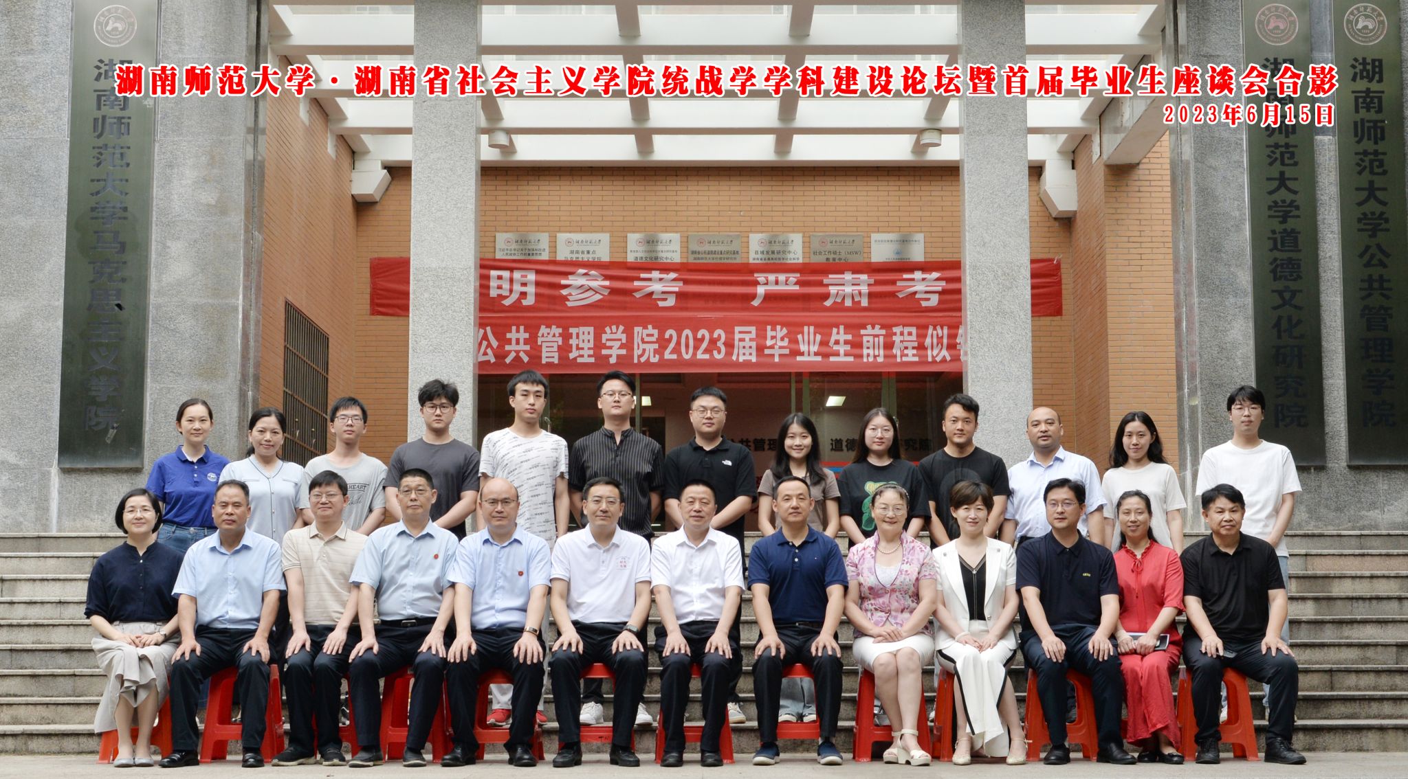 湖南师范大学公共管理学院政治学一级学科下设置“统一战线学”硕士学位点,是全国高校中第二个、省属院校全国第一个统战学研究生学位点,具有良好的影响力。目前已招收37名硕士研究生,16名学生获得硕士学位。主要研究方向:统战学基础理论、参政党理论、统战历史和人物研究、统战工作研究。该学位点着重培养掌握统战基本知识和基础理论、熟悉当代中国统战历史和制度、了解主要领域统战工作、具有一定统战实践经验的专门人才,能胜任人民政协机构、中共统战部门、民主党派组织和其他统战性组织、社会主义学院和普通高校的相关管理、研究或教学工作。目前开设方向限选课“统一战线学原理”“参政党理论专题”“中共统一战线史”和任意选修课“统战前沿问题研究”“统战重要文献导读”“统战工作研究讲座”“党外代表人士研究讲座”等课程。