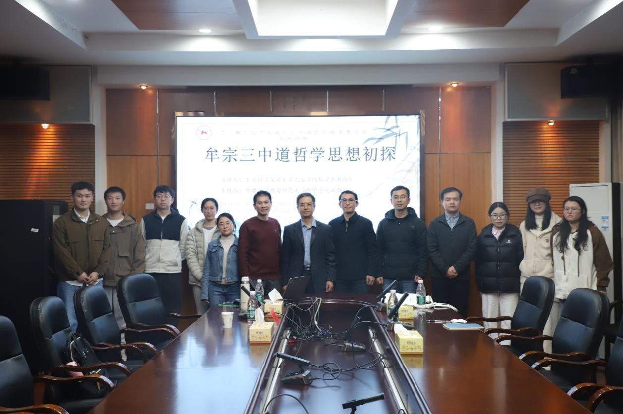 (通讯员 曹飞艳)11月24日晚上,深圳大学人文学院王兴国教授应邀莅临我院作题为“牟宗三的中道哲学思想初探”的学术讲座,本次讲座由哲学学院邹啸宇副教授主持,哲学学院萧平副教授、彭婷讲师、费春浩讲师及四十余名博士生、硕士生参加了讲座。