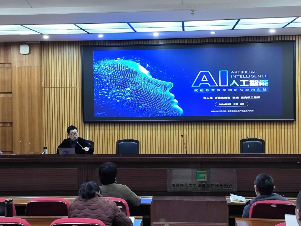 2026年3月19日下午,为深入贯彻落实国家“人工智能+”行动战略,加快推进教育数字化转型,我院特邀湖南AI培训研究院院长、湖南邮电职院成教处处长、湖南电信通服培训公司数智部主任张人杰教授,在学院三楼学术报告厅举办“人工智能赋能教育教学创新应用实践”专题培训会。政治与公共管理学院领导班子及全体教职工参加培训,培训由学院苏静副院长主持。