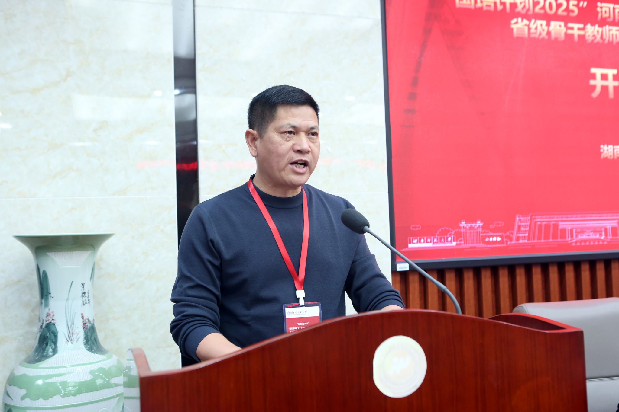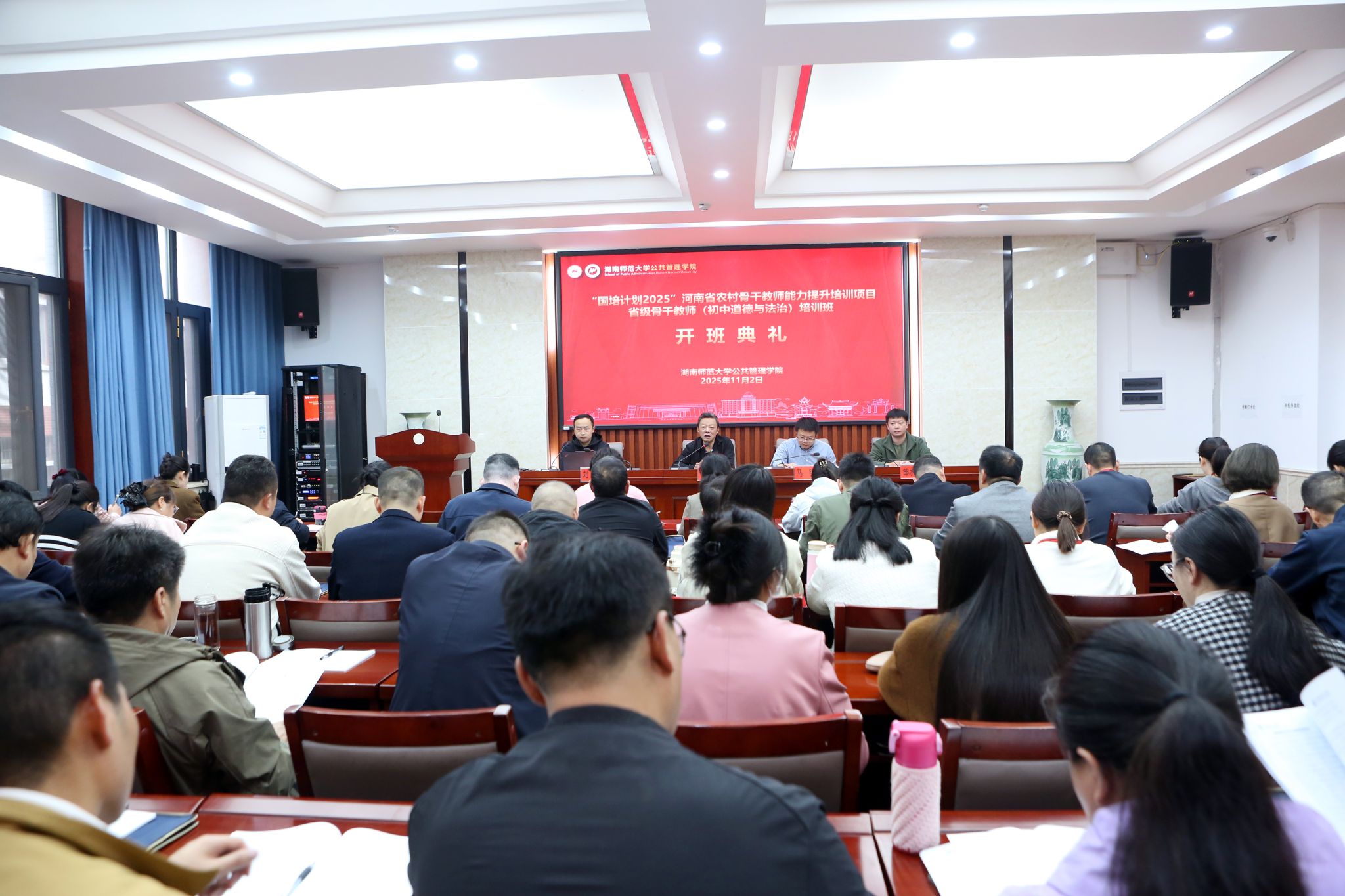 2025年11月2日上午8时,“国培计划2025”-河南省农村骨干教师能力提升项目省级骨干教师(初中道德与法治)培训班开班典礼在我院博后楼三楼报告厅隆重举行。湖南省初中道德与法治名师培养对象、雅礼中学思政教师、雅礼丁江学校校长马明,我院副院长胡雪松、培训中心主任邹水平参加了典礼,典礼由培训中心副主任刘操主持。